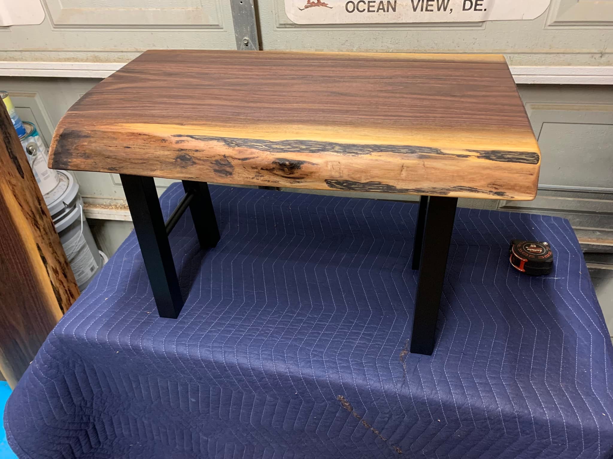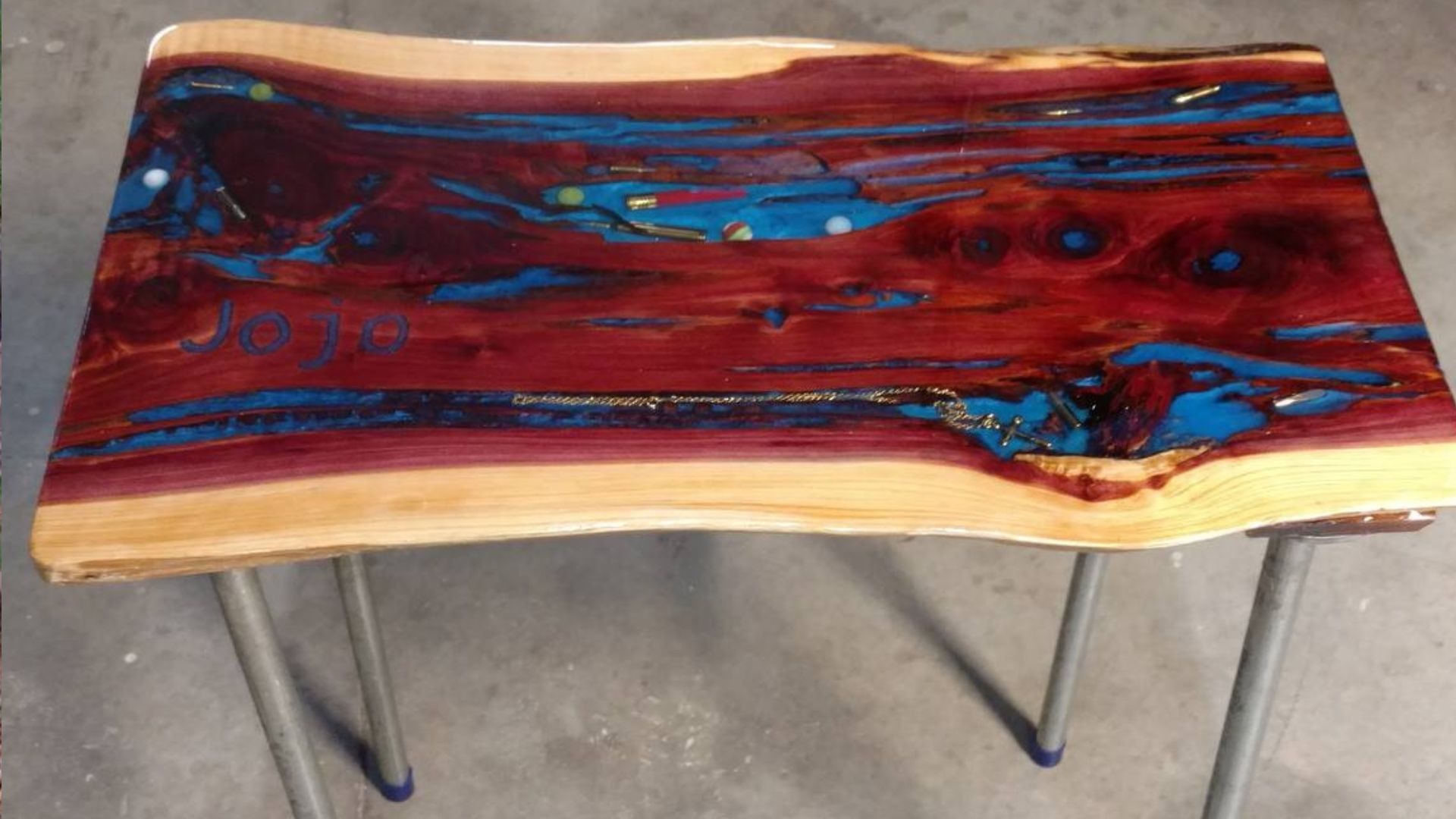 Once you've got some experience finishing live-edge slabs the next step is to do an epoxy-resin project. It's very easy and a lot of stores sell epoxy kits that have everything you need to get started. Julie-Dennise showed off how she made an epoxy-resin table for her grandson, using clear resin and placing items like marbles and other decorations inside the crevices. It's an impressive look and there's plenty of inventive ideas you can do once you're experienced with epoxy.