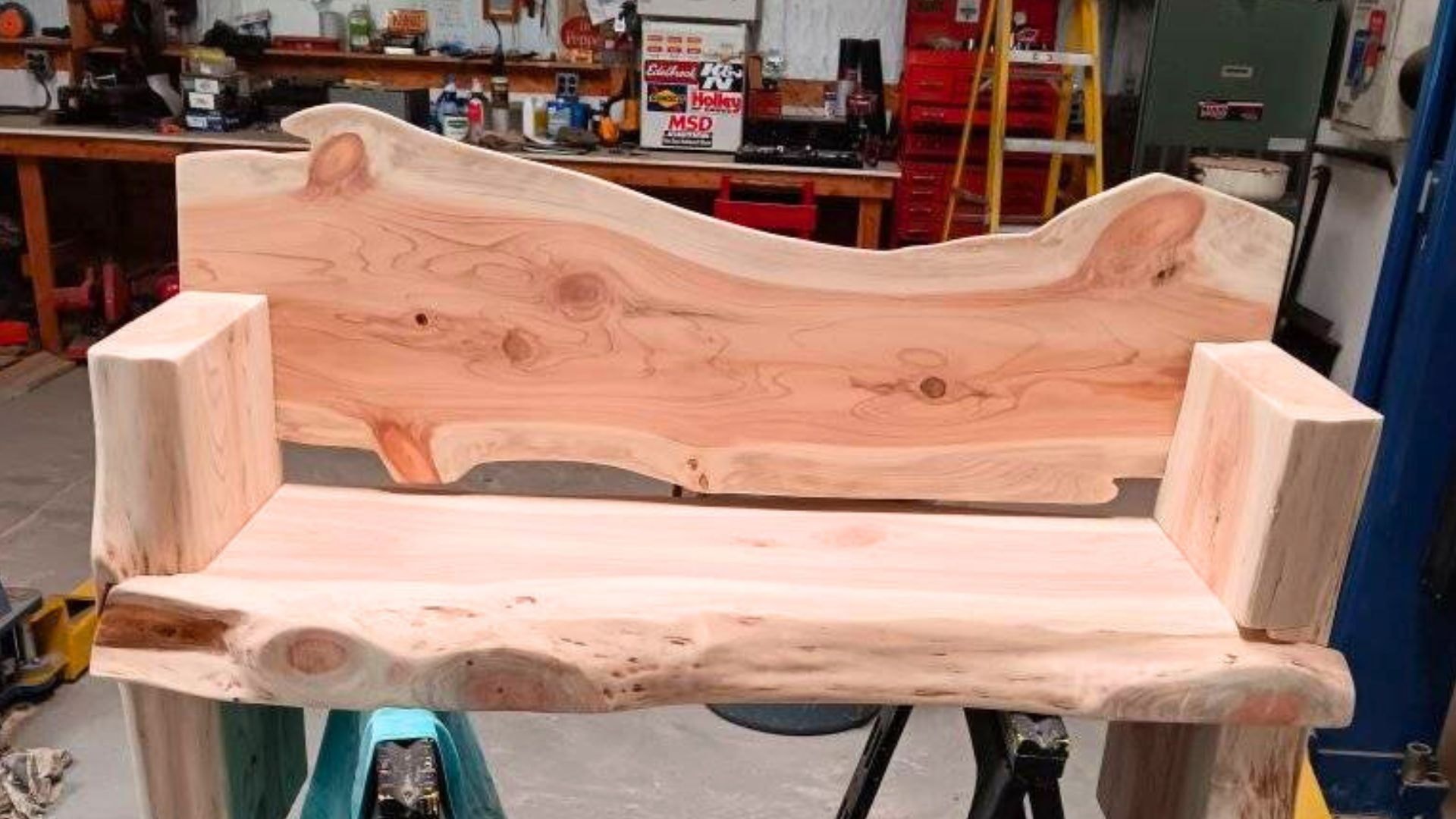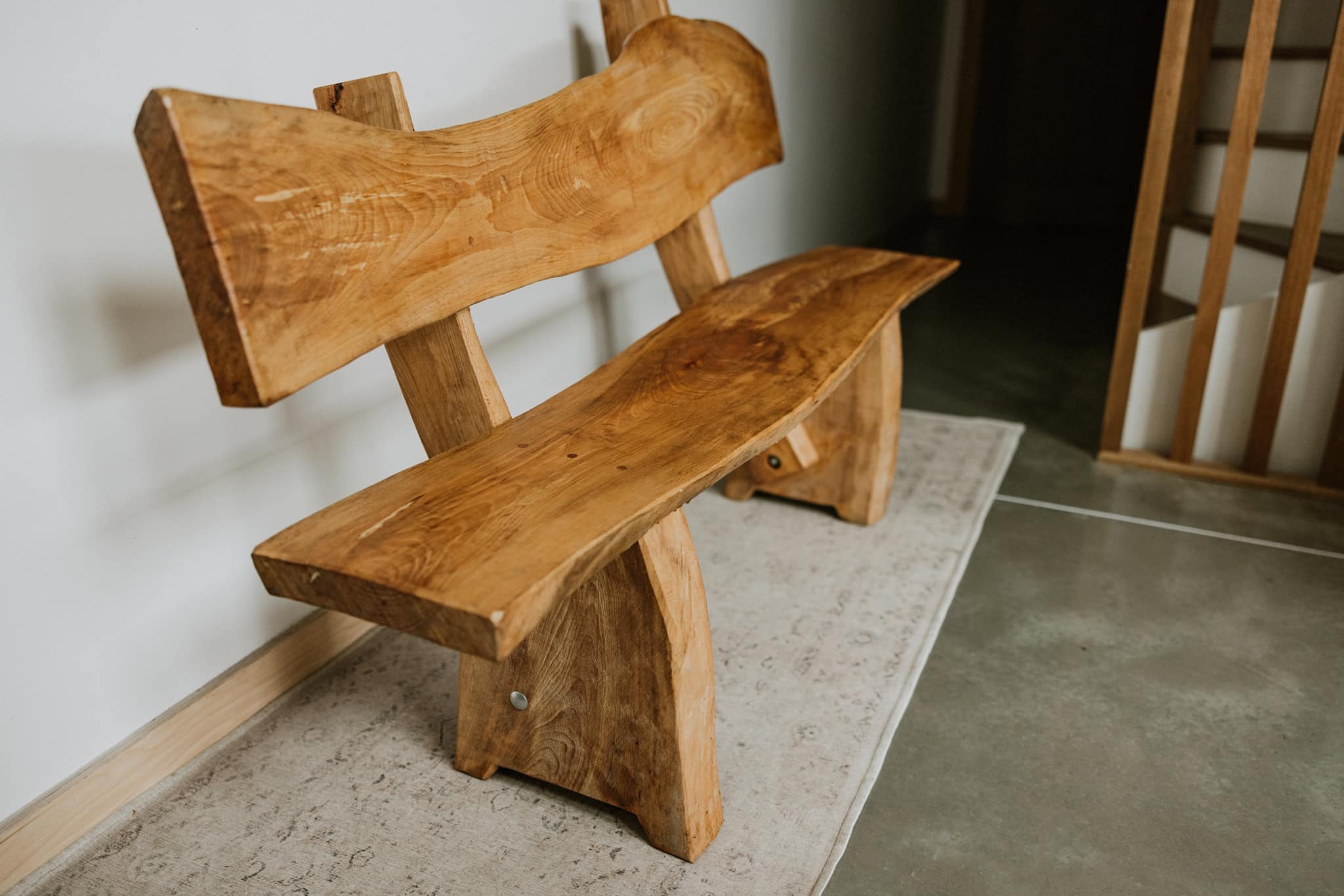Let the natural grain and patterns of your logs guide your project, like what Collin did with his slab bench. Every part of it, from the seat to the back and even the legs, runs with the natural angles of the timber, and without sacrificing comfort.