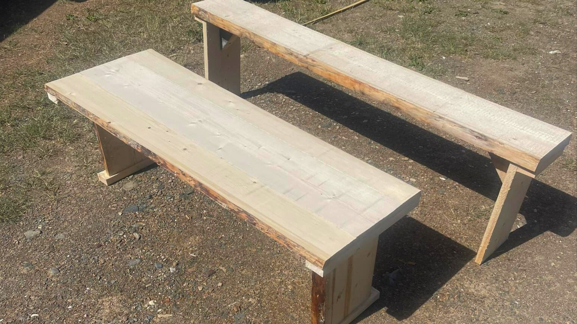 Each of these benches was made by someone with a Woodland Mills portable sawmill, able to source their own materials, who shared them on the Woodland Mills Product Owners and Community Facebook Group. These DIY projects give new life to new cuts of wood as well as repurposed materials, transforming them into functional and beautiful benches.