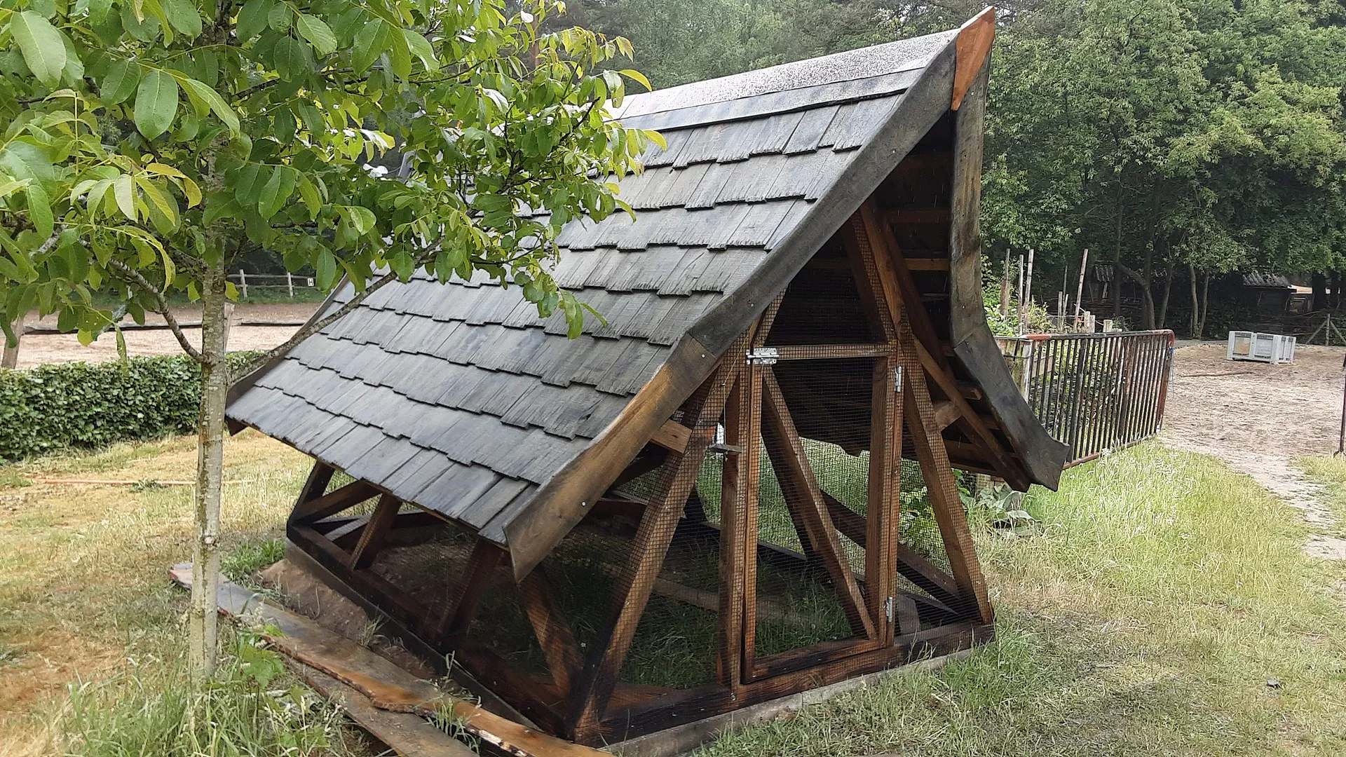 "Chicken coop. Fir construction and red Cedar roofing."