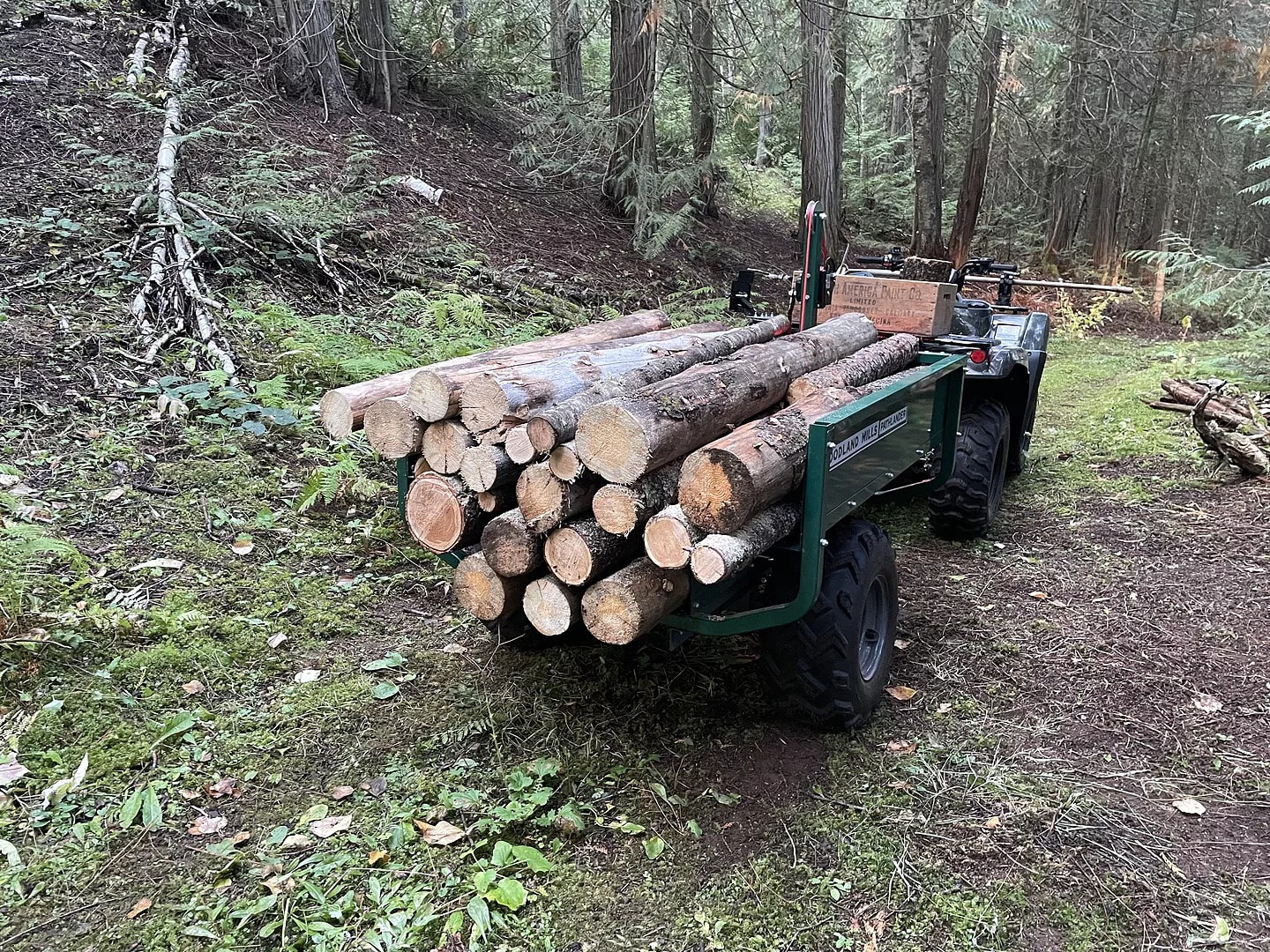 "I purchased this Pathlander trailer to primarily transport down and burnable salvaged trees from 12 Acres which I recently purchased. It had to be a trailer that would function on quite steep terrain , (bringing the loads down fortunately). This thing is super tough, incredibly stable even on sidehill and capable of moving as much weight as my quad can possibly pull. It’s not possible to get a better trailer for this kind of narrow quad trail access. I would recommend this trailer to anyone who requires a need for firewood hauling or heavy material , soils, compost , gravel , leaves etc. The dump feature is such a bonus as well."