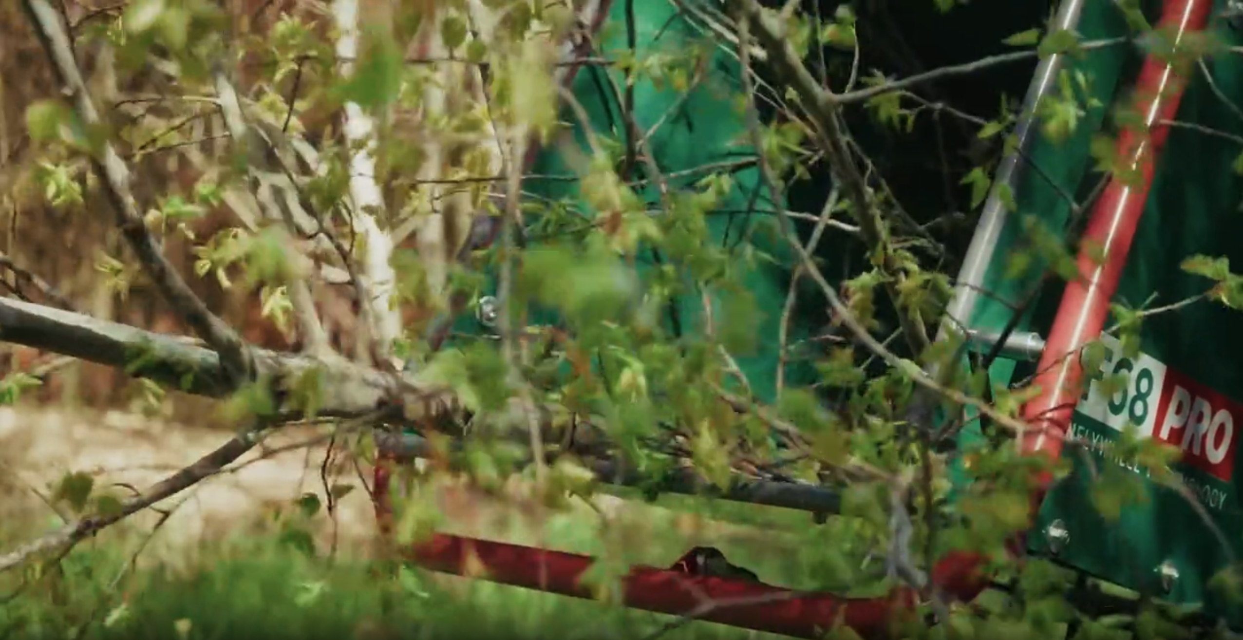 The TF68 PRO operates on tractors with 20 to 50 HP at the PTO. It has a large 27” x 26” (69 cm x 66 cm) infeed hopper opening that tapers down to a 6" x 8" (15 cm x 20 cm) opening where the 7-7/16“ (19 cm) diameter roller grabs the branches and feeds them through the chipper. Material as small as 1/4” (6 mm) diameter and as large as 6" (15 cm) diameter can be fed through the TF68 PRO.