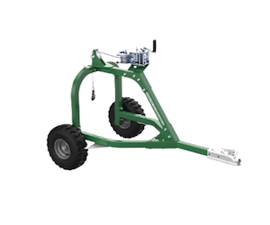 Branches are pulled into the WC46 with the 6" (15 cm) diameter infeed roller. The roller is hydraulically driven by the chipper's self-contained hydraulic system, and the hydraulic pump is belt driven from the main flywheel shaft. The infeed roller is adjustable in direction and speed, making it easy to feed branches of all shapes and sizes. The roller down pressure may be adjusted via two large springs, ensuring it grabs branches and easily pulls them in, eliminating the need for manual feeding.