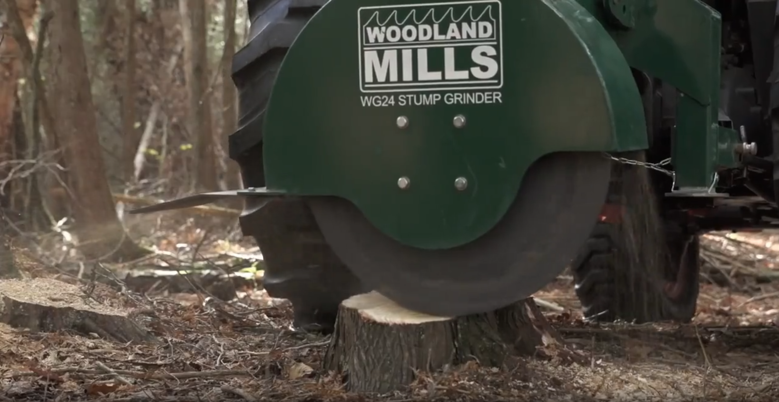 The WG24 stump grinder is designed to work on tractors with a PTO shaft, and works best on tractors with PTO shafts that are independent of the tractor's transmission drive system. This allows the operator to control the speed of the tractor separately from the PTO speed. Since the tractor pulls the grinder through the stump, the rate at which the tractor moves is important, and should be independent of the PTO shaft. The WG24 stump grinder is required to be operated at 540 RPM.